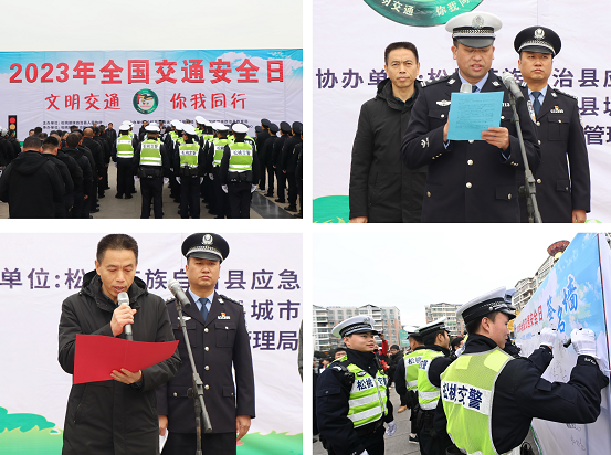 2023年12月1日,松桃苗族自治縣公安局交警大隊以“文明交通,你我同行”為主題,聯(lián)合縣應急管理局、縣城市管理局、縣融媒體中心、縣交通運輸綜合執(zhí)法大隊、銅仁高速交警松桃大隊、中國人保財險松桃分公司、新型行業(yè)(美團、萬順叫車、 E 代駕等)、駕校代表、“兩客一危一貨”企業(yè)等相關單位200余人在世昌廣場舉行第十二個“122”全國交通安全日主題宣傳活動,奏響了道路交通安全旋律。