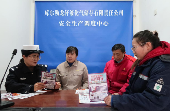 為提高液化氣企業(yè)人員和換氣居民尊法、學(xué)法、守法、用法的意識,從源頭預(yù)防液化氣事故,減少在運(yùn)輸和換氣等環(huán)節(jié)引發(fā)的道路交通事故,12月20日,庫爾勒市公安局交警大隊(duì)宣傳中隊(duì)組織民警主動深入到庫爾勒龍軒液化氣儲存有限責(zé)任公司,用通俗易懂的語言、靈活機(jī)動的方式送法律、講安全,力爭讓“文明交通、你我同行”主題宣傳銘記于心、落實(shí)于行。