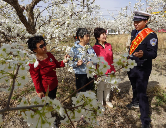 梨花艷、“警”色美、送安全、警相隨。4月15日,新疆庫爾勒市公安局交警大隊宣傳中隊再次組織民警輔警深入到各鄉(xiāng)鎮(zhèn)場梨園,向正在授粉的梨農(nóng)、市民和游客開展“美麗鄉(xiāng)村行”送安全、送服務(wù)活動。
