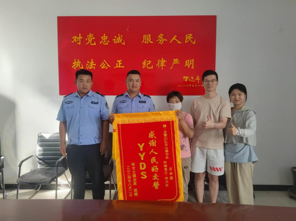 “多虧了新疆庫爾勒市公安局交警大隊天山路中隊的兩名執(zhí)勤交警在我突發(fā)交通事故、嚴(yán)重受傷后,向我伸出援手,及時撥打120,聯(lián)系家人,指揮疏導(dǎo)車輛安全繞行,為醫(yī)生搶救生命贏得了寶貴生命!”8月9日,家住庫爾勒的陳女士感慨地說出了心里話。日前,陳女士與家人將一面“感謝人民好交警,YYDS”的錦旗送到庫爾勒市公安局交警大隊,對履職盡責(zé)、守護(hù)生命安全的天山路中隊執(zhí)勤交警阿德力江·阿力木、左金磊點(diǎn)名表揚(yáng)。