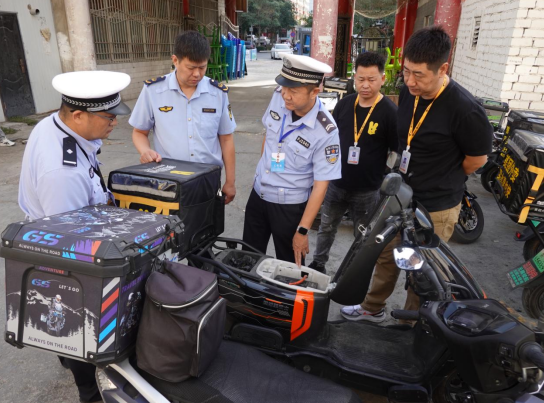 為深入推進(jìn)電動(dòng)自行車安全隱患全鏈條整治工作,從源頭上排查電動(dòng)自行車安全突出風(fēng)險(xiǎn)隱患,不斷強(qiáng)化電動(dòng)自行車質(zhì)量監(jiān)管,緊盯電動(dòng)自行車薄弱環(huán)節(jié),遏制電動(dòng)自行車交通違法多發(fā)勢(shì)頭,維護(hù)轄區(qū)道路交通秩序安全有序暢通,9月23日,新疆庫(kù)爾勒市公安局交警大隊(duì)會(huì)同庫(kù)爾勒市市場(chǎng)監(jiān)督管理局等部門采取聯(lián)合執(zhí)法、同向發(fā)力、齊抓共管、標(biāo)本兼治、疏堵結(jié)合、形成合力,安全護(hù)航不停歇,大力開展“交通安全人人有責(zé)、安全騎行從我做起”主題宣講活動(dòng),織密電動(dòng)自行車“安全網(wǎng)”。當(dāng)日,庫(kù)爾勒市公安局交警大隊(duì)車輛管理所、人民路中隊(duì)、天山路中隊(duì)抽調(diào)民警與庫(kù)爾勒市市場(chǎng)監(jiān)督管理局執(zhí)法人員思想上合心、工作上合力、行動(dòng)上合拍,嚴(yán)格落實(shí)部門安全監(jiān)管責(zé)任,對(duì)外賣配送、銷售點(diǎn)、維修點(diǎn)等企業(yè)開展電動(dòng)自行車安全隱患專項(xiàng)全鏈條整治行動(dòng),重點(diǎn)檢查外賣配送、銷售點(diǎn)、維修點(diǎn)等企業(yè)電動(dòng)自行車是否建立臺(tái)賬登記制度;是否存在非法改裝、拼裝、加裝、超出標(biāo)準(zhǔn)的電動(dòng)自行車等問題,整治中發(fā)現(xiàn)庫(kù)爾勒一家外賣配送企業(yè)部分電動(dòng)自行車涉嫌座包人為加長(zhǎng)、軸距超長(zhǎng)、電瓶超標(biāo)等問題,民警和執(zhí)法人員立即下達(dá)限期整改通知書,要求該外賣配送企業(yè)查明原因,盡快恢復(fù)電動(dòng)自行車出廠狀態(tài),徹底消除安全隱患經(jīng)過復(fù)查合格后許可上路行駛。