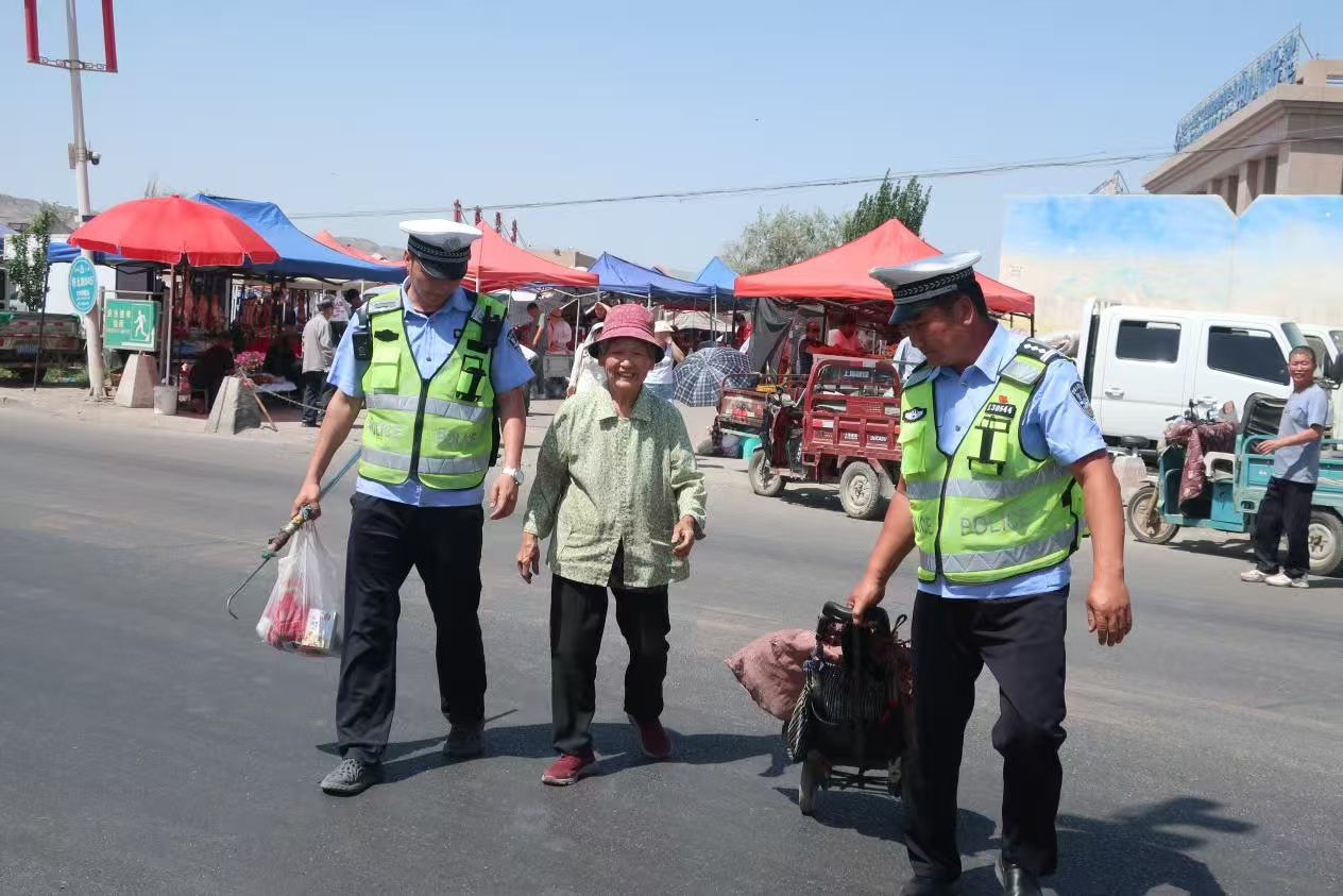 其間。執(zhí)勤民警輔警還不忘參加志愿者服務(wù)活動(dòng),幫助老弱病殘?jiān)邪踩^(guò)馬路,教育引導(dǎo)攤主將車輛擺放在安全處,消除身邊的安全隱患。