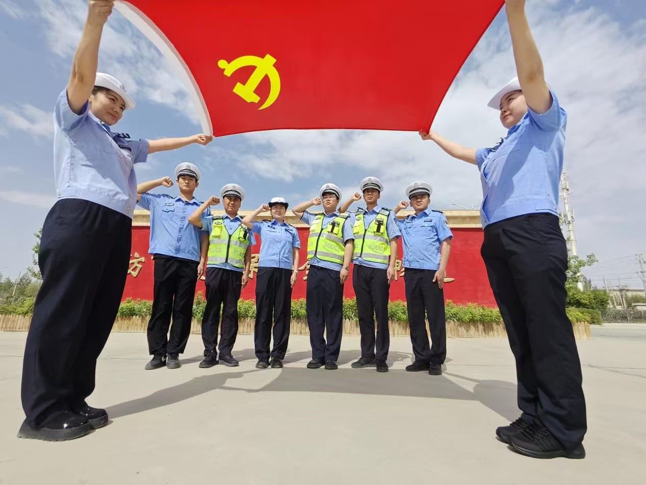 “一顆警心永向黨,永葆對(duì)黨絕對(duì)忠誠的政治本色!”信念如磐,警旗永跟黨旗走,鑄忠誠、守初心、擔(dān)使命,始終以‘除隱患、防事故、保安全、保暢通’為工作目標(biāo),全力確保轄區(qū)道路安全、有序、暢通。”“黨旗引領(lǐng)警旗,黨旗所指警旗所向。黨旗在哪里高高飄揚(yáng),哪里就有對(duì)黨最忠誠的目光。”“對(duì)黨忠誠鑄警魂,服務(wù)人民守初心,執(zhí)法公正勇?lián)?dāng),紀(jì)律嚴(yán)明作表率……”