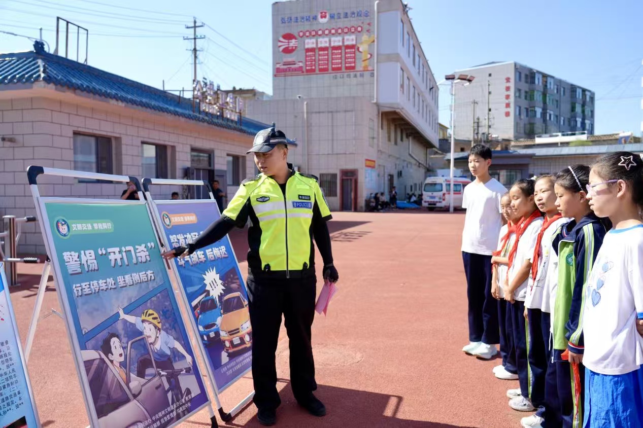活動現(xiàn)場,交警巧妙地將警車、警用摩托車“搬”到了校園操場,以實(shí)物為教具展開生動教學(xué),并結(jié)合學(xué)生活潑好動的特點(diǎn)和上下學(xué)途中常見的出行場景,創(chuàng)新采用“理論+案例”的教學(xué)模式,圍繞“如何安全過馬路”“怎樣正確乘坐交通工具”等主題,通過模擬信號燈通行、演示安全帶系法、講解頭盔佩戴規(guī)范等方式,將交通安全知識生動地展現(xiàn)在同學(xué)們眼前,讓晦澀的交規(guī)條文變得鮮活易懂。
