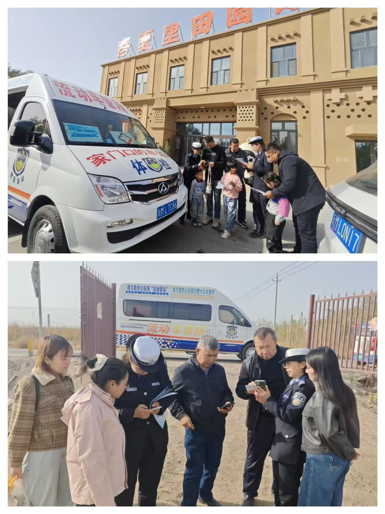 為深入推進公安交管“放管服”改革,縮短服務(wù)半徑,實現(xiàn)車駕管業(yè)務(wù)“就近辦”,打通服務(wù)農(nóng)村地區(qū)群眾“最后一公里”,為促進農(nóng)業(yè)增效、農(nóng)民增收辦實事,為鄉(xiāng)村振興增活力添動力,從源頭上消除農(nóng)村交通安全隱患,預(yù)防和減少交通事故的發(fā)生,10月22日,庫爾勒市公安局交通管理大隊車輛管理所(以下簡稱“庫爾勒市車管所”)深耕“田間警務(wù)”、播撒“平安種子”,將“流動車管所”開到阿瓦提鄉(xiāng)明昆格爾村公主的紡車采摘園、吾夏克鐵熱克村香梨小鎮(zhèn),將“放管服”便民服務(wù)和交通安全知識送到田間地頭和農(nóng)村群眾家門口,讓“下鄉(xiāng)服務(wù)零距離、普法宣傳無止境”成為服務(wù)農(nóng)村群眾的新常態(tài),更成為助力鄉(xiāng)村振興的又一務(wù)實舉措。