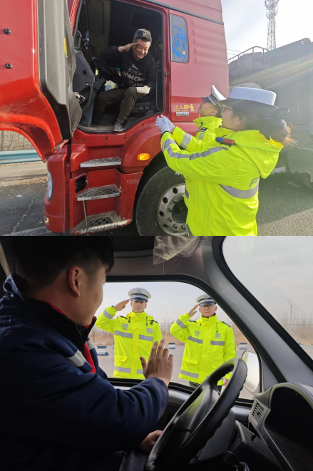 除了將暖心又暖胃的熱騰騰餃子送到駕駛?cè)耸种,還為大家送上方便面、瓶裝水、餐巾紙等途中必備品以及交通安全“大禮包”。同時,為消除車輛長途運輸中的交通安全隱患、民警輔警還對車輛進行安全檢查,免費添加玻璃水,讓駕駛?cè)藗兏惺艿搅?ldquo;家”的溫暖。
