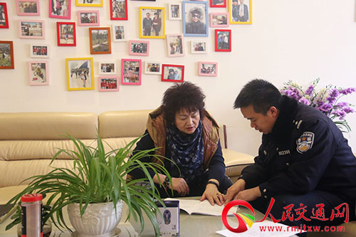 民警檢查幼兒園管理臺賬(陸德華 攝)