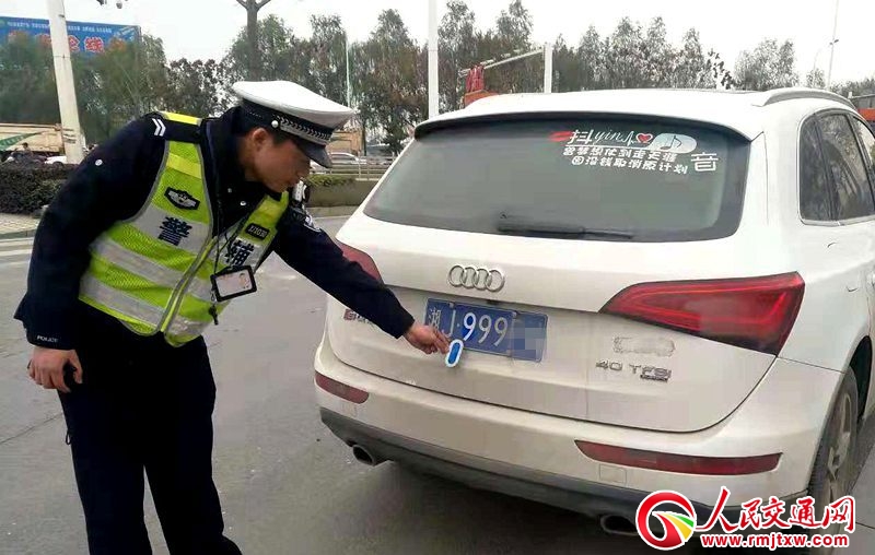 12月12號下午16時10分,常德交警支隊直屬一大隊三中隊民警接到大隊指揮中心指令,一輛牌號為湘J999**的小車駕駛?cè)松嫦觽卧熳冊鞕C(jī)動車號牌。接到預(yù)警信息后,大隊三中隊民警迅速出動,設(shè)卡組織攔截。最終在市城區(qū)柳葉大道西延線被民警成功攔截。民警立即上前進(jìn)行了仔細(xì)檢查,細(xì)心地民警發(fā)現(xiàn)該車車牌上面粘貼了白色膠帶,將號牌湘J099**變造為湘J999**,經(jīng)查,該車駕駛?cè)送衬,是一?0后年輕女性,常德市人。在鐵的證據(jù)面前,駕駛?cè)笋R上變得神色慌張,最終承認(rèn)了自己違法變造號牌的事實。民警依法開具《公安交通管理行政強制措施憑證》,暫扣車輛做進(jìn)一步處理。