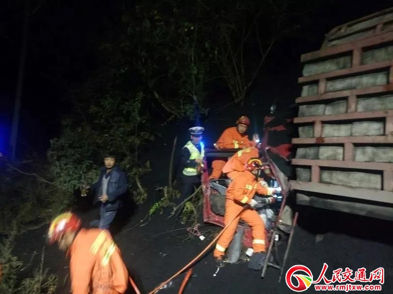 當(dāng)晚20時(shí)20分許,宣威市公安局交警大隊(duì)格宜中隊(duì)接到“110”指揮中心指令稱:“在格宜鎮(zhèn)花大溝煤礦路段一輛運(yùn)輸原煤的大貨車翻在路邊,駕駛員被困在車?yán),生死未卜,?qǐng)速去救援”。警情就是命令,時(shí)間就是生命。正在轄區(qū)組織開(kāi)展夜查酒駕統(tǒng)一行動(dòng)的格宜交警中隊(duì)中隊(duì)長(zhǎng)邱正輝立即帶領(lǐng)輔警趙德貴、管訪、李永峰駕駛警車火速趕赴事故地點(diǎn)。同時(shí),并第一時(shí)間電話聯(lián)系格宜鎮(zhèn)衛(wèi)生院出動(dòng)醫(yī)護(hù)人員前往事故現(xiàn)場(chǎng)協(xié)助施救。