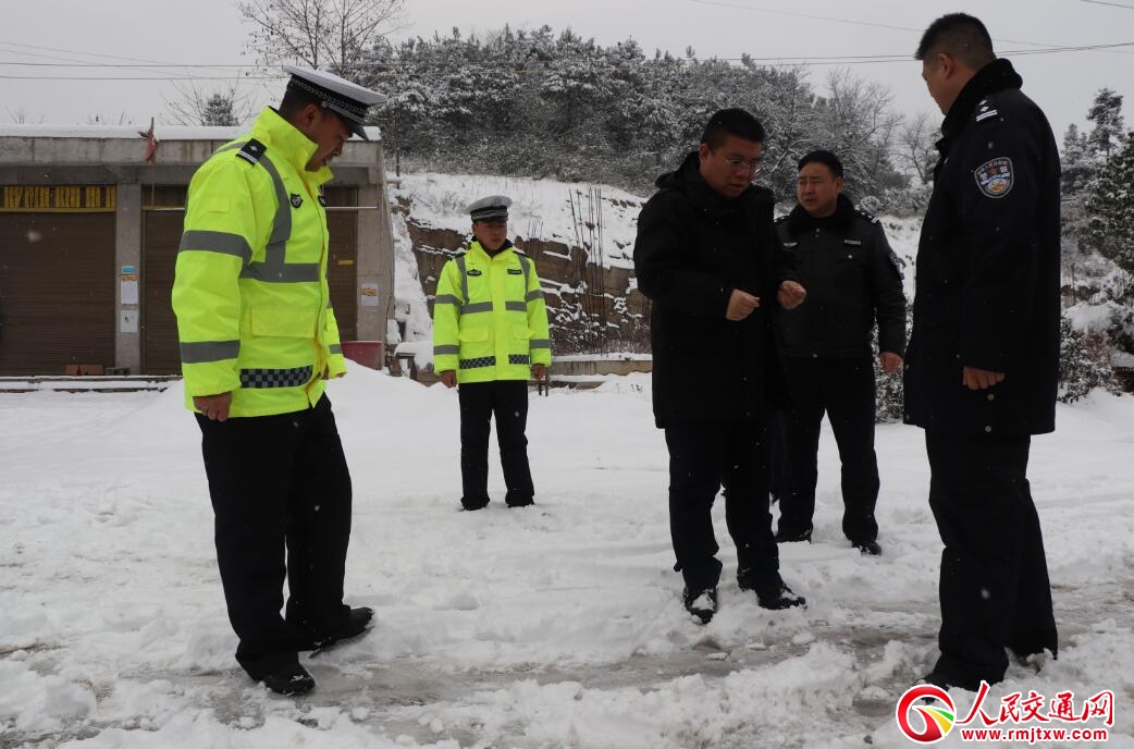 2018年12月30日,縣委書記李俊宏、政法委書記石磊一行來到凝凍嚴重的S304省道干串路段,指導(dǎo)抗凝保暢工作,并充分肯定了松桃公安交警不怕苦、不怕累、頂風(fēng)霜、冒嚴寒抗凝保暢,確保凝凍天氣以來全縣轄區(qū)未發(fā)生一起因路面凝凍的交通事故,并向交警大隊全體民警、協(xié)警帶來親切的問候。