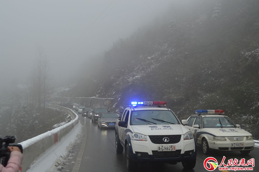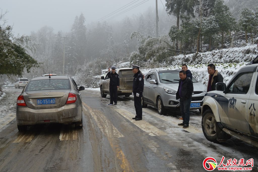 1月3日上午8時,涂松大隊長召集全體民警、輔警組成撒鹽除冰隊風雪兼程來到了轄區(qū)泰坪至泥高至務(wù)川與道真線交界處(344縣道)冰雪路段,一到現(xiàn)場,面對歸心似箭的在外回家過年和途徑運輸貨物的司機們,涂松大隊長立即就公路撒鹽除冰行動進行了安排部署,細化到人,采取定人、定崗措施,分秒必爭。在抗凝路上,現(xiàn)場全體民警、輔警發(fā)揚連續(xù)作戰(zhàn)、不怕疲勞的戰(zhàn)斗精神,“雪警”們互相協(xié)同作戰(zhàn),對冰雪重點路段進行交叉巡查,指揮車輛通行,確保了全路段、全天候、全方位的巡查覆蓋,同時,實行全段管制,在冰雪路段設(shè)置反光錐和路況警示牌,提示過往車輛緩行。由于該路段滯留車輛較多,為確保車輛行駛安全,鄒海東副大隊長在涂松大隊長的安排部署下,駕駛警車在撒鹽除冰車輛后面緩行引導(dǎo)滯留車輛安全通行。