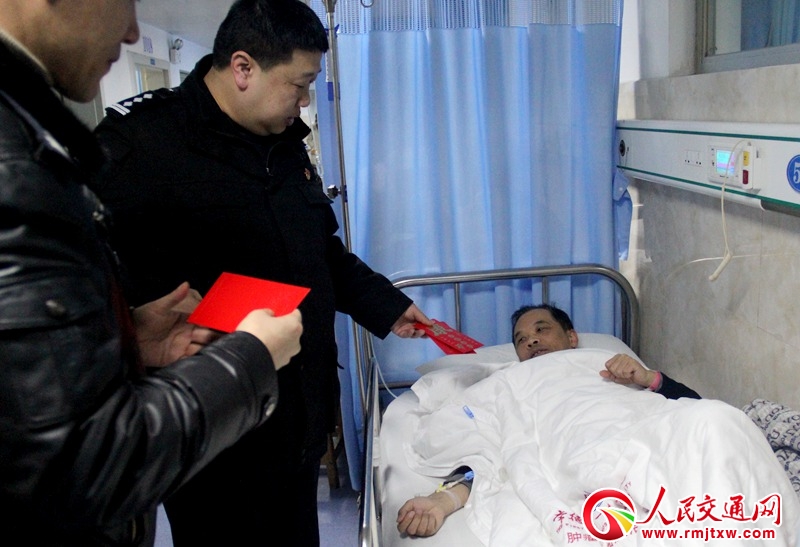 人民交通網(wǎng)訊(通訊員 劉小滿(mǎn) 蘇瑩)2月1日上午,常德交警支隊(duì)直屬一大隊(duì)教導(dǎo)員張帆在副大隊(duì)長(zhǎng)戴俊文的陪同下來(lái)到常德市第一人民醫(yī)院,親切看望慰問(wèn)病倒在工作崗位上的大隊(duì)民警鄧志鴻,送去新春祝福。