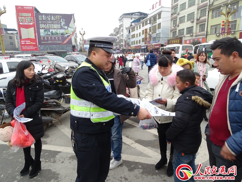 人民交通網(wǎng)訊(通訊員 龍秀生 田超飛)為進一步增強廣大人民群眾的交通安全意識和文明出行意識,減少各類交通事故的發(fā)生。2019年2月13日,松桃縣公安局交警大隊嚴(yán)格貫徹落實上級公安機關(guān)道路交通安全宣傳工作,組織警力,充分利用“趕集日”,積極開展春季道路交通安全宣傳教育工作。