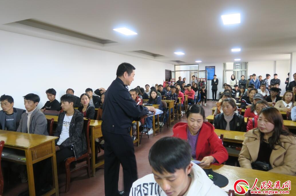 人民交通網(wǎng)訊(通訊員 保國強(qiáng) 張尚坤)為進(jìn)一步強(qiáng)化駕校學(xué)員安全意識(shí),推進(jìn)文明交通安全進(jìn)駕校“五個(gè)一”活動(dòng)的開展。2月18日,云南曲靖陸良交警走進(jìn)轄區(qū)機(jī)動(dòng)車駕駛員培訓(xùn)學(xué)校,為120余名學(xué)員帶去一堂交通安全知識(shí)講座,發(fā)放了交通宣傳資料。