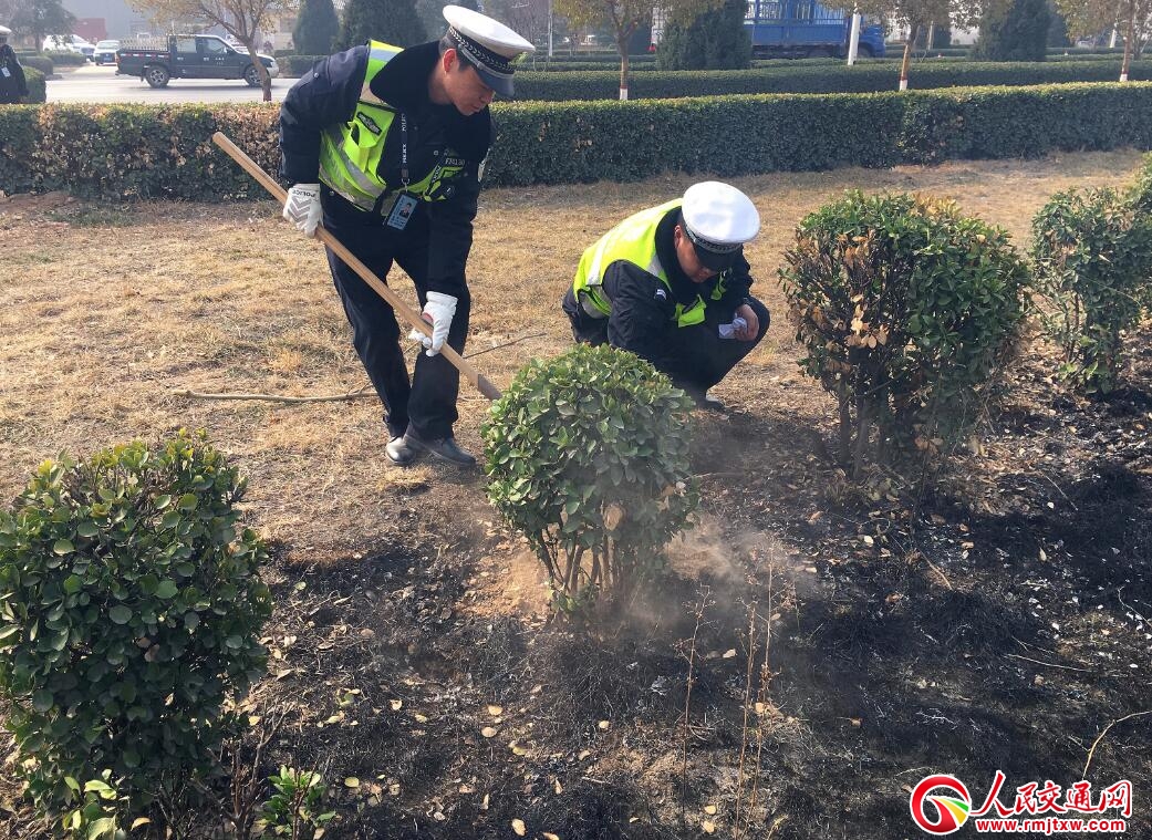 人民交通網(wǎng)訊(通訊員 王文斌)3月6日10時(shí)許,山西省臨猗縣公安局交警 大隊(duì)城區(qū)中隊(duì)民警在豐喜大道巡邏時(shí),發(fā)現(xiàn)綠化帶外邊的草坪著了火,當(dāng)時(shí)雖然火勢(shì)不太大,但隨風(fēng)飄蕩的煙霧嚴(yán)重影響公路上車(chē)輛的安全通行,且有愈燃愈烈之 勢(shì),一旦引燃相隔數(shù)米的景觀松樹(shù)或枯樹(shù),后果將不堪設(shè)想。民警們立即下車(chē),一邊設(shè)立明確警示標(biāo)志,指揮、疏導(dǎo)過(guò)往車(chē)輛減速、有序通行,一邊沖上前去,用腳 踩,用樹(shù)枝撲打,并從附近借來(lái)鐵鍬,進(jìn)行鏟土隔離、掩埋,防止蔓延。數(shù)分鐘后,看到火勢(shì)得到控制,火苗完全熄滅,他們才放心返回工作崗位,這一幕得到過(guò)往 群眾高度贊揚(yáng)。