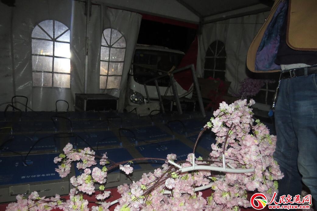 當(dāng)日,恰逢?yáng)|城路一居民準(zhǔn)備在家中舉辦結(jié)婚喜宴,布置的宴席大棚、慶典舞臺(tái)、LED屏幕等占據(jù)了部分路面,周圍擺放了反光錐形筒。廉某某駕車過來時(shí),只顧著看手機(jī),直接撞到了停放在路中間的牌號(hào)晉MZ92**輕型普通貨車尾部左后側(cè),巨大的沖擊力,導(dǎo)致緊挨著貨車的大型LED屏幕、大棚等嚴(yán)重破損,所幸無人員傷亡。