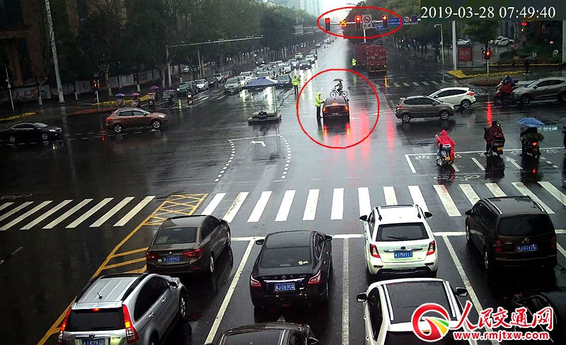 當(dāng)天早上7時(shí)50分許,常德城區(qū)下著小雨,交通十分繁忙。常德交警支隊(duì)直屬一大隊(duì)二中隊(duì)警員正在常德市城區(qū)武陵大道宏達(dá)路口執(zhí)勤早高峰。當(dāng)洞庭大道由東向西的信號燈已經(jīng)變?yōu)榧t燈時(shí),一輛懸掛“湘J968××”臨時(shí)號牌的小型汽車,無視交通信號燈(闖紅燈)直接越過路口停止線,被正在路口執(zhí)勤的警員現(xiàn)場攔停。經(jīng)查,駕駛?cè)送跄常拇ňd陽人,有C1駕駛證。王某認(rèn)為自己的小車懸掛臨時(shí)號牌,存在僥幸心理,不會被電子警察抓拍,但沒想到還是被路面執(zhí)勤民警逮個(gè)正著。隨后,民警對駕駛?cè)送跄酬J紅燈違法行為帶來的嚴(yán)重危害進(jìn)行了宣傳教育,依法開具《公安交通管理簡易程序處罰決定書》現(xiàn)場處罰。駕駛?cè)送跄硨⒚媾R駕駛證記6分,罰款200元的處罰。