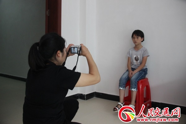 圖為大公田社區(qū)警務(wù)室工作人員為搬遷群眾采集相片。