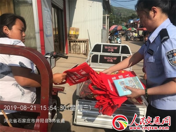 人民交通網(wǎng)訊(記者 常玉坤 通訊員 李忠勇 畢博文)河北省井陘縣交警大隊宣傳科針對網(wǎng)民反映205省道沿線村莊急需普及交通安全常識的建議,積極回應網(wǎng)民關切,8月21日,不畏天氣炎熱來到孫莊等村莊開展交通安全宣傳活動。