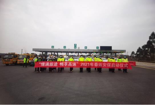 潘市路產(chǎn)大隊聯(lián)合高速交警祁陽大隊、白水收費站、潘市養(yǎng)護(hù)所、養(yǎng)護(hù)工區(qū)、施救隊等單位在白水收費站外廣場舉行2021年春運啟動儀式。