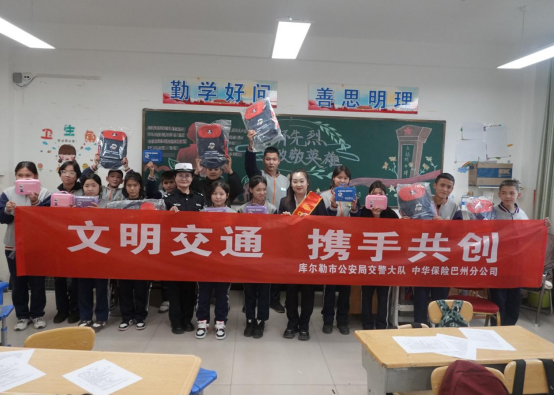 為即將到來的第十三個(gè)122“全國交通安全日”預(yù)熱,在農(nóng)村學(xué)校營造濃厚的“文明交通 攜手共創(chuàng)”為主題的交通安全宣傳氛圍,在廣大中小學(xué)生心中播撒交通安全的“種子”,進(jìn)一步提升交通安全意識(shí)和文明意識(shí),提升應(yīng)急避險(xiǎn)能力和自我保護(hù)能力,預(yù)防和減少冬季農(nóng)村道路交通事故的發(fā)生。11月25日下午,新疆庫爾勒市公安局交警大隊(duì)攜手中華聯(lián)合財(cái)產(chǎn)保險(xiǎn)股份有限公司巴州分公司開展別開生面的警保聯(lián)動(dòng)進(jìn)校園交通安全宣講活動(dòng)。