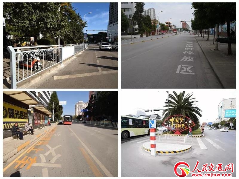 ●科學(xué)合理施劃禁停黃線、行人過(guò)街斑馬線,合理渠化改造路口車(chē)道,在沿線公交站臺(tái)噴涂黃色安全線、文明提示語(yǔ);