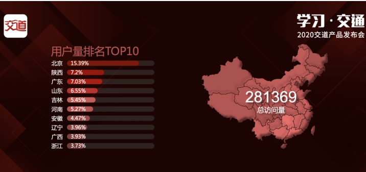 目前,交道APP的在線教育板塊拓展了道路運輸行業(yè)內十個行業(yè)類別,業(yè)務范圍輻射全國共113個地級市,其中用戶量排名前三位的省份依次是:北京占比15.39%、陜西占比7.2%、廣東占比7.03%。