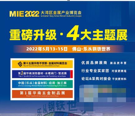 2022年5月13日-15日,大灣區(qū)金屬產(chǎn)業(yè)博覽會在佛山樂從鋼鐵世界盛大舉辦,敬請期待!