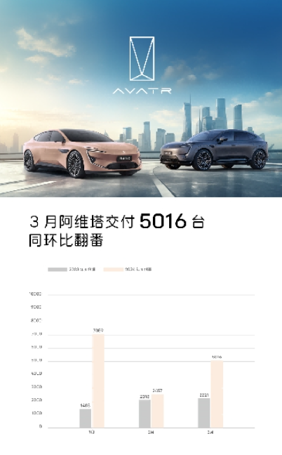 近日,阿維塔科技宣布,其3月交付量達(dá)到5016臺(tái),同環(huán)比翻番,持續(xù)領(lǐng)跑智能豪華市場。這一成績的背后,是阿維塔科技不懈追求技術(shù)創(chuàng)新和產(chǎn)品升級(jí)的結(jié)果,也彰顯出阿維塔雙旗艦產(chǎn)品的品質(zhì)實(shí)力。