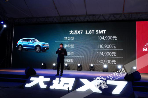眾泰汽車銷售有限公司總經(jīng)理楊國華先生公布大邁X7價格 記者 陳龍濤 攝