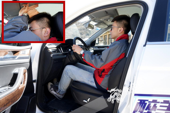 體驗者身高174cm,腿長110cm,正常駕駛狀態(tài)下坐在駕駛座,頭部空間一拳兩指 記者 陳龍濤 攝