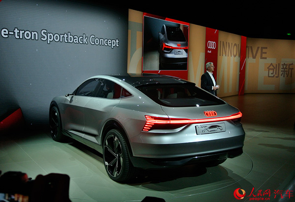 本次首發(fā)的奧迪e-tron Sportback概念車,采用了獨(dú)特的跨界設(shè)計(jì)風(fēng)格,流線的車身配合跨界元素具有很強(qiáng)的科幻感。車頭的自發(fā)光的LOGO、半封閉式的中網(wǎng)格柵、貫穿式的尾燈造型或預(yù)示著奧迪未來(lái)新車的設(shè)計(jì)趨勢(shì)。該車具備奧迪e-torn電驅(qū)動(dòng)作為動(dòng)力,最大功率320千瓦,峰值扭矩800牛米,續(xù)航里程可達(dá)500公里。