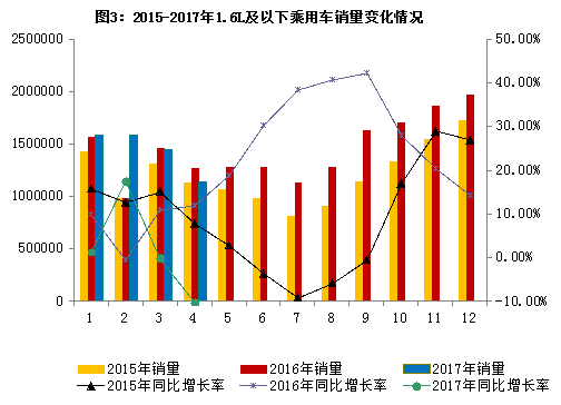 1-4月,1.6升及以下乘用車累計銷售533.3萬輛,比同期下降0.3%,占乘用車銷量比重為69.5%,同比下降2個百分點。