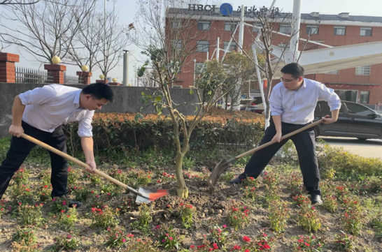 活動(dòng)中員工們個(gè)個(gè)熱情高漲、分工合作。有的手握鍬鏟土挖坑、有的拖運(yùn)樹苗、有的提桶澆水、有的扶著爬梯,有的修剪枝葉......現(xiàn)場(chǎng)一片熱火朝天。一棵棵樹苗挺立在土壤中,在春光明媚的陽(yáng)光中相映成趣,點(diǎn)綴出一派生機(jī)盎然的景象。