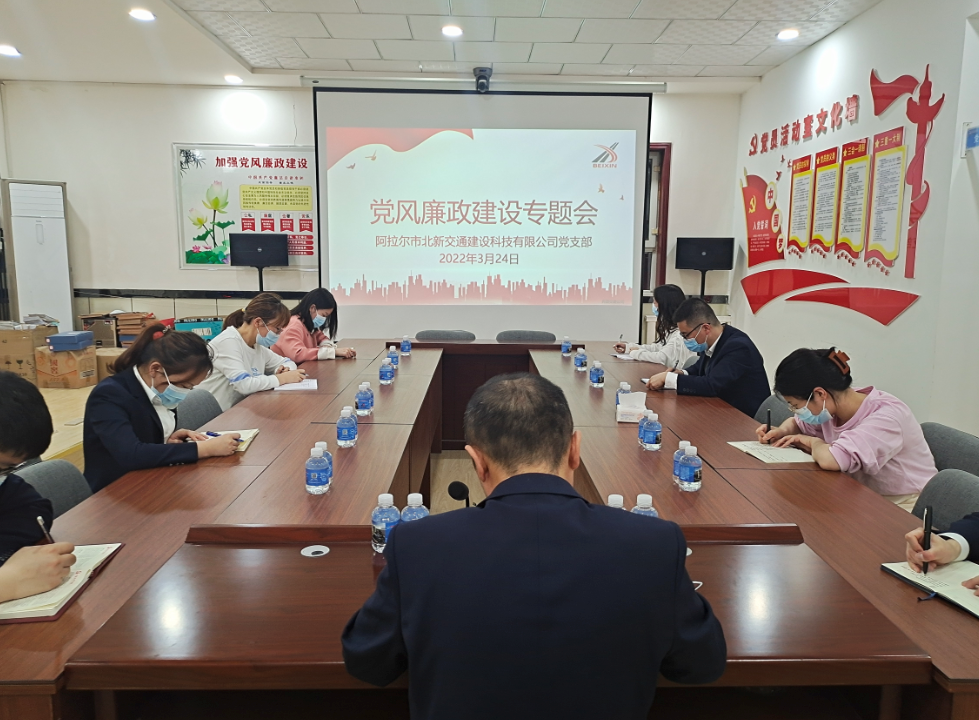 3月24日晚,為進(jìn)一步加強(qiáng)公司黨風(fēng)廉政建設(shè),強(qiáng)化黨員干部及關(guān)鍵崗位人員廉潔從業(yè)意識(shí),阿拉爾市北新交建公司召開黨風(fēng)廉政建設(shè)專題會(huì),用身邊發(fā)生的典型案例再次警示大家要廉潔從業(yè),并結(jié)合公司實(shí)際,對(duì)加強(qiáng)黨風(fēng)廉政建設(shè)進(jìn)行安排部署。