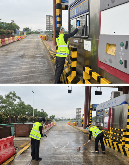 本次活動(dòng)重點(diǎn)對(duì)收費(fèi)窗口、收費(fèi)亭內(nèi)、崗?fù)け、護(hù)欄、花箱、邊溝衛(wèi)生等容易形成衛(wèi)生死角的區(qū)域進(jìn)行了全面清理。員工們拿起抹布和水桶,對(duì)安全島、護(hù)欄、收費(fèi)亭、車道、便民服務(wù)箱、綠化帶等進(jìn)行徹底清理,充分發(fā)揚(yáng)不怕辛苦、不怕臟的精神。有的倚著護(hù)欄拿抹布擦拭亭壁玻璃、有的拿著噴槍沖洗車道、有的蹲在邊溝拾撿煙頭、廢紙屑。所有人員分工明確,認(rèn)真、細(xì)心、負(fù)責(zé)進(jìn)行清掃活動(dòng)。經(jīng)過(guò)一個(gè)多小時(shí)的努力將廣場(chǎng)及崗?fù)だ锢锿馔獯驋叩臒ㄈ灰恍拢S后對(duì)區(qū)域進(jìn)行全面消毒。