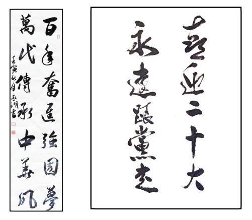 延平管理中心的梁承湖、建甌管理中心的高小榮利用業(yè)余時(shí)間,發(fā)揮所長(zhǎng),揮毫潑墨,用自己的方式表達(dá)對(duì)二十大的期盼之情,將對(duì)黨的愛與忠誠(chéng)以墨抒情,一筆一劃強(qiáng)勁有力,字字情深,把骨子里的這份堅(jiān)定匯入筆尖,彰顯我們的文化自信,傳遞著對(duì)未來的美好愿景。(福建省高速公路集團(tuán)南平公司 趙欣奕)