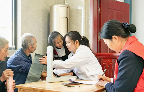 愛心義診,情暖重陽。志愿者聯(lián)合當(dāng)?shù)蒯t(yī)護人員在上王村活動廣場為村里老人們進行免費體檢,測量血壓并認真記錄,對老人們進行一對一高血壓健康指導(dǎo),普及高血壓、糖尿病的防治知識,提高老年人群的健康意識。