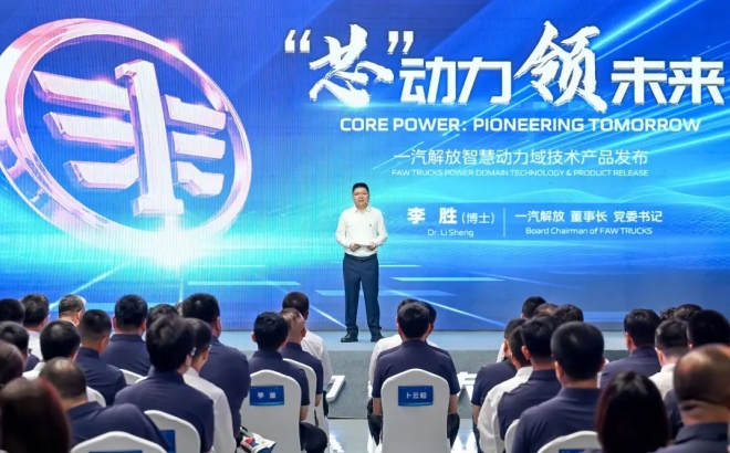 ▲ 李勝發(fā)布一汽解放智慧動(dòng)力域技術(shù)及產(chǎn)品
