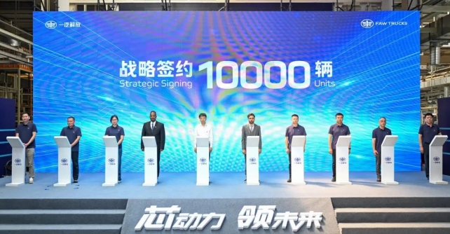 一汽解放總經(jīng)理、黨委副書記于長(zhǎng)信與塔赫米德運(yùn)輸公司、上海安能等企業(yè)代表共同簽訂戰(zhàn)略合作協(xié)議,進(jìn)一步深化商業(yè)合作,共繪領(lǐng)航藍(lán)圖。