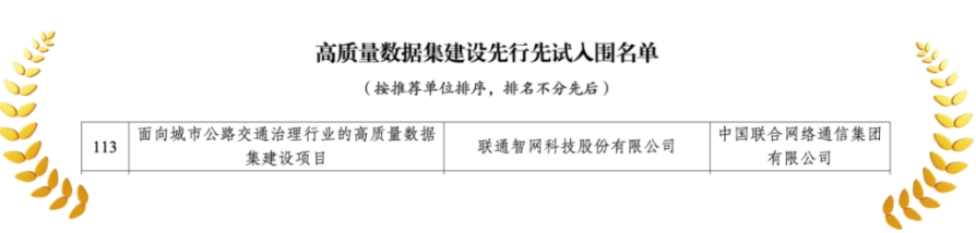 日前,國(guó)家數(shù)據(jù)局公布“高質(zhì)量數(shù)據(jù)集建設(shè)先行先試入圍名單”,聯(lián)通智網(wǎng)科技憑借“面向城市公路交通治理行業(yè)的高質(zhì)量數(shù)據(jù)集”項(xiàng)目,成功入選第一批國(guó)家級(jí)行業(yè)高質(zhì)量數(shù)據(jù)集建設(shè)先行先試單位。