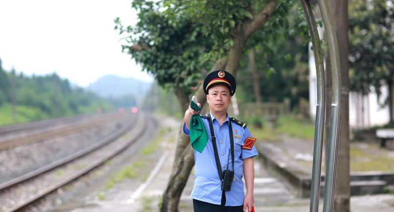 長(zhǎng)河碥站站長(zhǎng)湯泉來(lái)到車站已經(jīng)快十年了。2011年,他來(lái)到該站任副站長(zhǎng),走路走了近半個(gè)小時(shí),山上稀稀落落住著幾戶人家,翻過(guò)一座山后,看見(jiàn)車站孤零零地“鑲嵌”在鐵道邊上。2016年,前站長(zhǎng)退休,湯泉成了長(zhǎng)河碥站的“領(lǐng)頭人”。