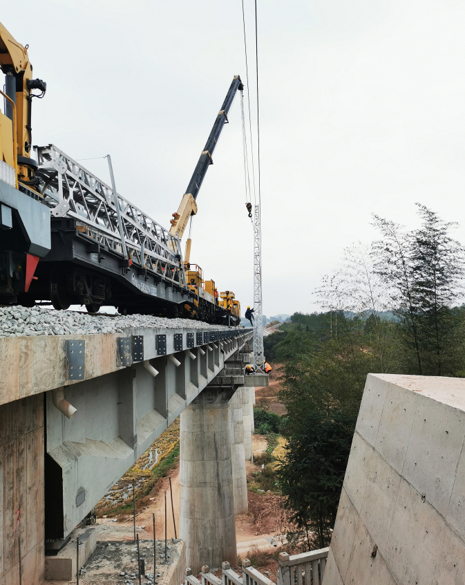 提到起支柱組立,班組成員的臉上便泛起了神秘而自豪的神色。據(jù)了解,春節(jié)施工期間,而為了和站前單位錯峰施工,軌道車班組往往依計劃在夜間出車,水茜至何屋區(qū)間的支柱組立地段多為單線橋。不同于雙線區(qū)段路面空間富余,支柱可以倒運在路面后再起吊組立;單線橋橋邊緣距離道床不足50公分,無法滿足支柱的安全倒運。視野不明朗,安全距離不足,加上橋面未做護(hù)欄,“路面倒運起吊”的傳統(tǒng)辦法存在巨大的高空墜落和墜物傷人風(fēng)險!