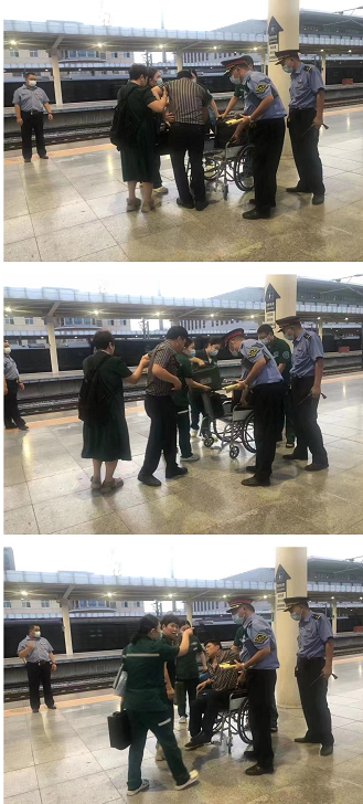 2023年7月14日,1453次列車由南昌局南昌客運(yùn)段贛州車隊(duì)贛京錫六組列車長胡勇?lián)?dāng)乘務(wù),列車運(yùn)行聊城至菏澤區(qū)間,18時(shí)20分4車37座旅客于付忠家屬找到工作人員,聲稱其老公左側(cè)腰痛,面色發(fā)白,大汗不止。經(jīng)詢問得知有腎結(jié)石病史目前無法站立。列車長胡勇于18時(shí)23分立即趕赴現(xiàn)場(chǎng),開啟音視頻記錄儀,并廣播找醫(yī)生,未有醫(yī)生到達(dá)現(xiàn)場(chǎng),經(jīng)車長胡勇聯(lián)系菏澤站撥打120急救電話,列車到達(dá)菏澤站時(shí),車長胡勇與車站工作人員和120醫(yī)務(wù)人員把疾病旅客安全轉(zhuǎn)送院,家屬表示感謝。