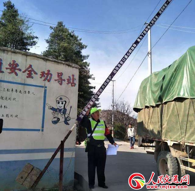 筆者一行來到德澤鄉(xiāng)米支嘎村委會(huì)下海子村,車輛停住了,擋住路的是一根橫在路中央的一根鐵欄桿,這根4米左右長的欄桿比起城里的自動(dòng)感應(yīng)欄桿來顯得樸實(shí)簡陋,支撐欄桿的是一根較粗的鐵管,另一頭用鐵鏈子綁著兩塊石磚,用來固定欄桿,欄桿兩邊貼上非?谡Z化的交通安全標(biāo)語。這時(shí)過來一輛小貨車,一名頭戴黃帽、身著制服和反光背心、手戴紅袖章的中年男子,一只手拿著交通安全勸導(dǎo)登記本,一只手舉著停車示意牌,檢查駕駛員有沒有攜帶駕駛證、查看車廂有沒有違法載人、勸導(dǎo)駕駛?cè)俗袷亟灰?guī)和安全知識(shí),之后駕駛員簽字確認(rèn),簽完字后用手舉起欄桿放行……