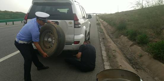 在得知情況后,民警迅速在現(xiàn)場(chǎng)后方設(shè)置好減速警告標(biāo)志和反光錐筒,指揮疏導(dǎo)后方交通,引導(dǎo)后方來(lái)車減速安全行駛。在做好各項(xiàng)安全措施之后,民警立即幫駕駛員開(kāi)始更換輪胎,前后共用了二十多分鐘,終于將輪胎換好,駕駛員激動(dòng)地握住民警的手說(shuō):“非常感謝你們,沒(méi)有你們的及時(shí)相助今天就麻煩了,路過(guò)的人們也不愿意停車,真的是太感謝你們了”。民警說(shuō),這是我們應(yīng)該做的,車壞在路上,放誰(shuí)身上都著急,幫個(gè)忙是應(yīng)該的,在駕駛員準(zhǔn)備出發(fā)時(shí),民警對(duì)沿黃公路的路況及周邊的加油站和修理鋪進(jìn)行了簡(jiǎn)單的介紹,并將自己的手機(jī)號(hào)留給了司機(jī),如果在沿黃路上遇到困難可以打電話進(jìn)行求助,我們每天24小時(shí)都有值班人員。