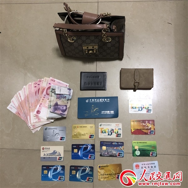 據(jù)胡警官介紹:“6月29日晚20時(shí)許,我正乘坐D6330次列車返回福鼎站派出所上班。當(dāng)列車離開寧德站后,我起身上衛(wèi)生間,突然發(fā)現(xiàn)前面的18F座位上有一個(gè)女士的手提包,周圍座位都沒有人,想起來幾分鐘前到寧德站時(shí)候前面座位一對夫婦下車了,可能是他們落下的,我就在車廂里喊了幾聲‘這個(gè)錢包是誰的?有誰落了錢包嗎?’但沒有人答應(yīng),我就馬上找來了列車長,和車長一起打開錢包,發(fā)現(xiàn)包里面有兩張身份證、一個(gè)黑色塑料袋里裝著一疊現(xiàn)金、一個(gè)卡包大概有十幾張銀行卡、還有一張郵政儲蓄銀行的存折,上面有13萬多的存款。經(jīng)過清點(diǎn),我發(fā)現(xiàn)錢包里共有現(xiàn)金人民幣8000多元。想到失主丟了這么多錢和銀行卡可能正急得焦頭爛額,我便立即同所里的值班民警聯(lián)系,通過錢包內(nèi)的身份信息聯(lián)系到了失主陳女士,然后我就把錢包先帶回了派出所,等陳女士第二天晚上來領(lǐng)回。”