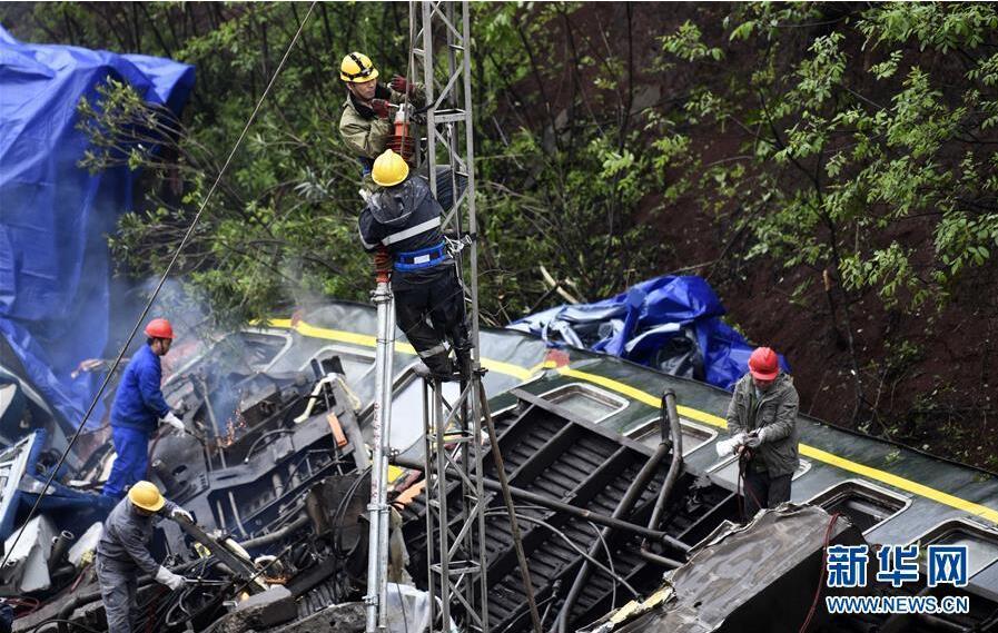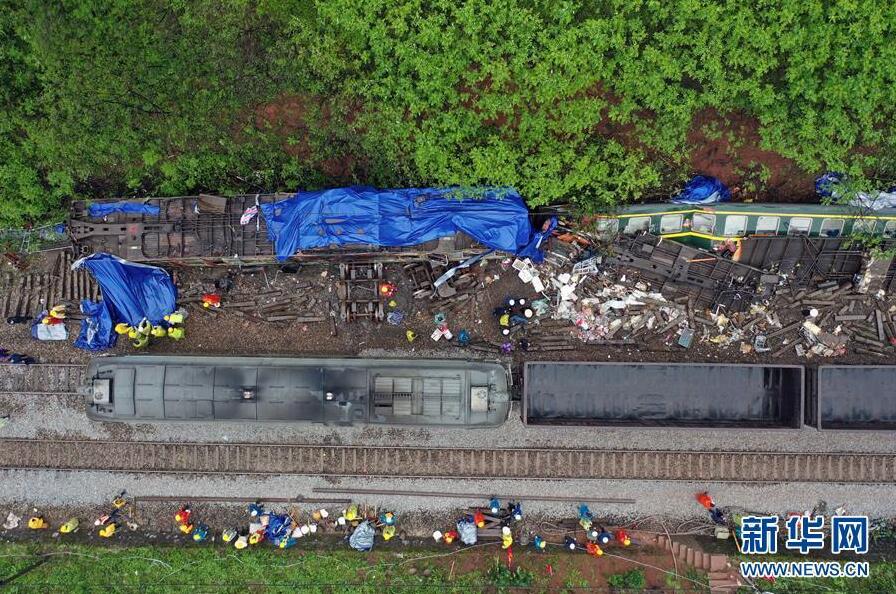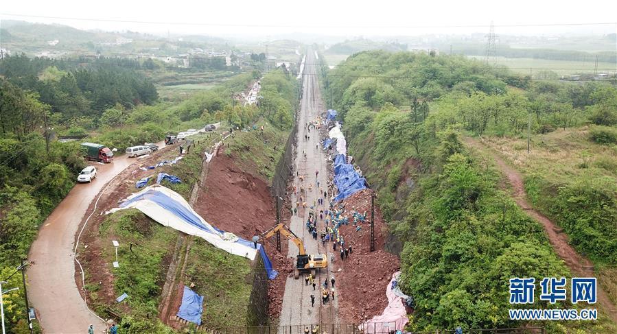 3月31日,工作人員在鐵軌上檢查。 3月30日,T179次列車途經(jīng)京廣鐵路湖南省郴州市永興縣高亭司鎮(zhèn)永華村路段時(shí),因附近山體滑坡,撞上塌方體,中斷行車。 事故發(fā)生后,多方力量在現(xiàn)場(chǎng)連夜緊張搶修,將脫軌側(cè)翻的列車車廂破拆清理出現(xiàn)場(chǎng),對(duì)塌方山體進(jìn)行處理。目前在修復(fù)的鐵軌上,已有車輛在進(jìn)行運(yùn)行安全測(cè)試。