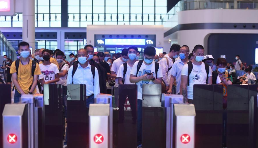 7月1日,旅客在重慶火車西站出行。當(dāng)日,為期62天的中國(guó)鐵路暑運(yùn)正式拉開(kāi)帷幕,至8月31日結(jié)束。圖為旅客排隊(duì)檢票。