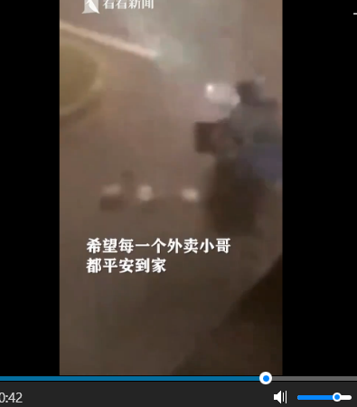 8月4日凌晨2點多,受臺風(fēng)“黑格比”影響,浙江玉環(huán)狂風(fēng)大作、風(fēng)雨交加。一位外賣小哥被拍到依然頂著臺風(fēng)送餐。外賣電動車被吹倒,餐盒散落一地,小哥抓住路旁的柱子才沒被吹跑。幾分鐘后,他終于艱難地站起來推著車子離開。